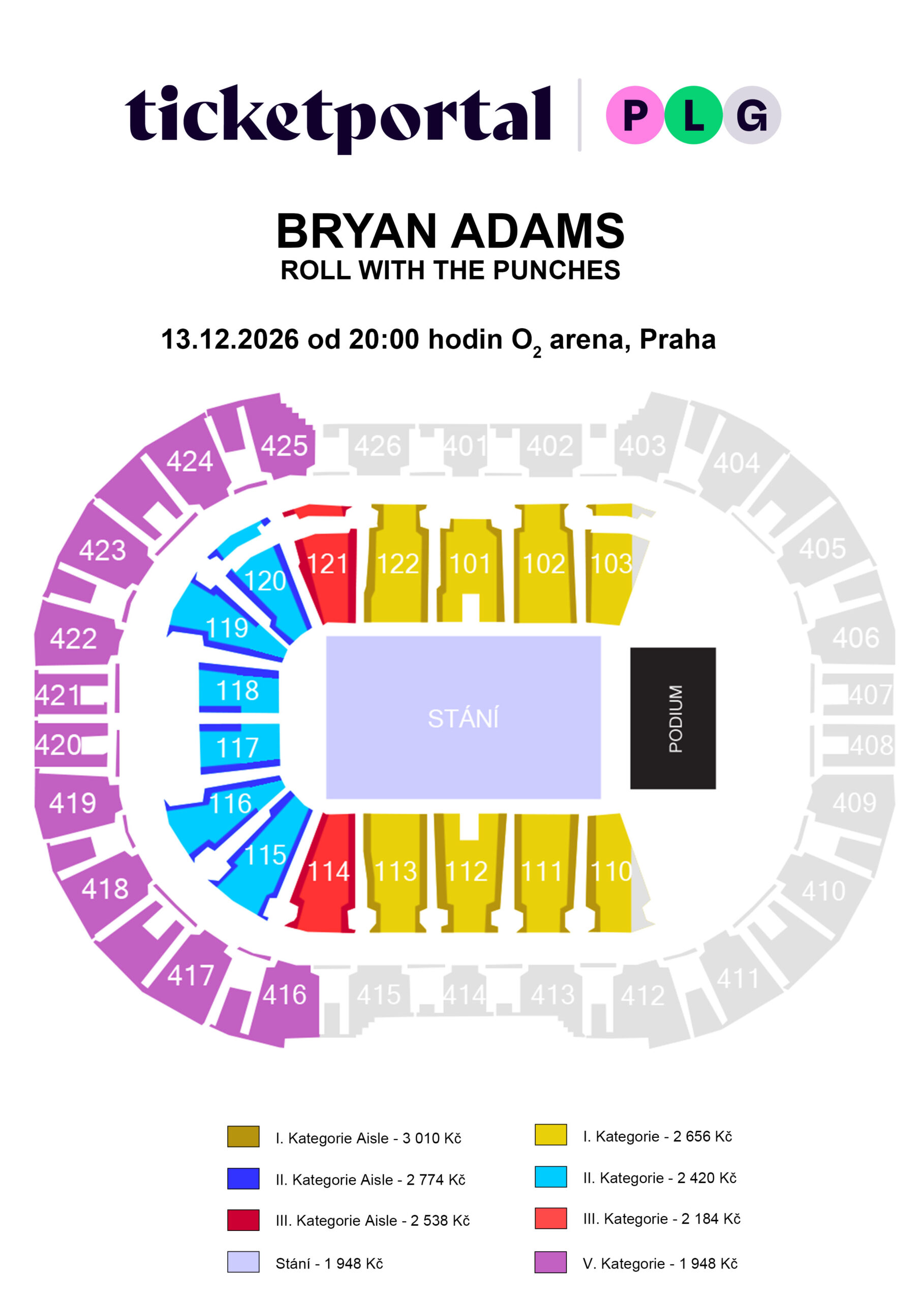Order wheelchair tickets from Ticketmaster (ticket@ticketmaster.cz) and Ticketportal (rezervace@ticketportal.cz).