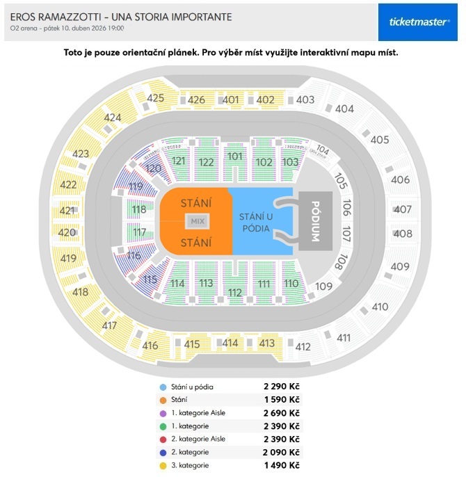 Vstupenky do O2 areny oficiálně prodávají pouze společnosti IRSnet CZ s.r.o. (Ticketportal) a Ticketmaster Česká republika, a.s. (Ticketmaster). Pokud vstupenku nakoupíte u jiných prodejců (vč. nákupu od jiných diváků), za jejich pravost a platnost pořadatel neodpovídá, přičemž jejich zakoupením riskujete, že nebudete vpuštěni do haly. Prodej vstupenek u oficiálních prodejců se dále řídí jejich obchodními podmínkami, které lze nalézt na jejich webových stránkách (https://www.ticketmaster.cz/, https://www.ticketportal.cz/).