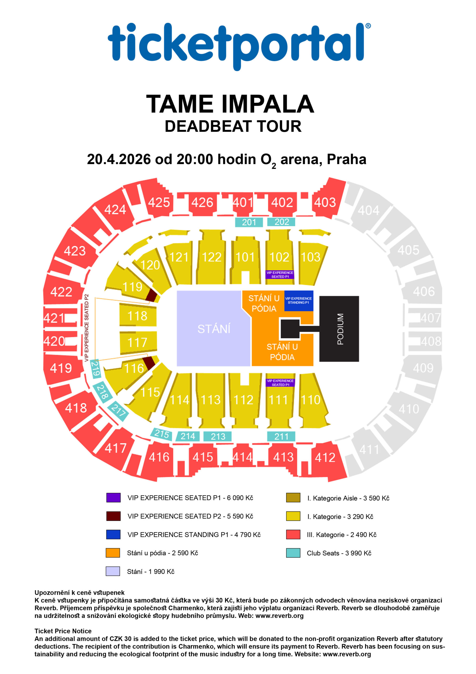Akce: Datum a čas akce mohou být změněny s upozorněním na webové stránce akce (www.o2arena.cz). Změna místa konání akce je vyhrazena, přičemž akce může být, bez dalšího nároku držitele vstupenky, dle rozhodnutí pořadatele, přesunuta do tzv. O2 universa (budova č. p. 2345, na adrese Českomoravská 2345/17, Praha 9).
