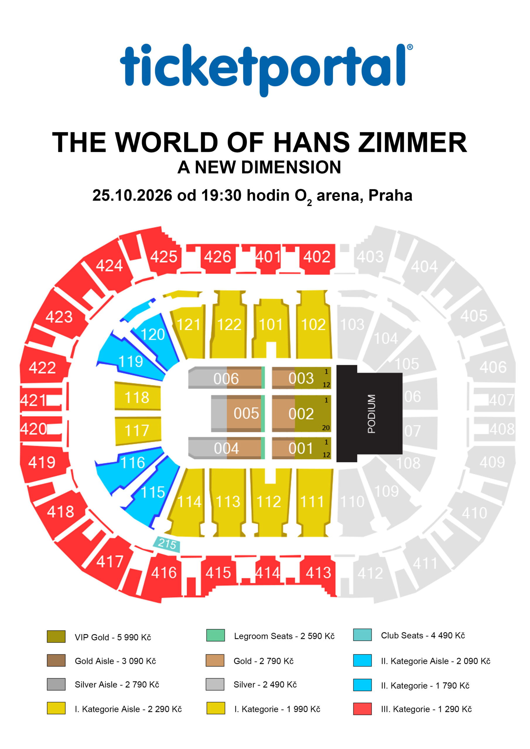 Akce: Datum a čas akce mohou být změněny s upozorněním na webové stránce akce (www.o2arena.cz). Změna místa konání akce je vyhrazena, přičemž akce může být, bez dalšího nároku držitele vstupenky, dle rozhodnutí pořadatele, přesunuta do tzv. O2 universa (budova č. p. 2345, na adrese Českomoravská 2345/17, Praha 9).