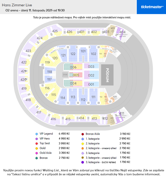 1 790 – 6 490 Kč Vstupenky pro držitele průkazu ZTP/P vozíčkáře objednávejte u společností Ticketportal (rezervace@ticketportal.cz) a Ticketmaster (ticket@ticketmaster.cz). |