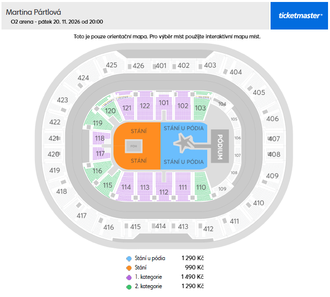 990 – 1 490 Kč Vstupenky pro držitele průkazu ZTP/P vozíčkáře objednávejte u společností Ticketportal (rezervace@ticketportal.cz) a Ticketmaster (ticket@ticketmaster.cz). |