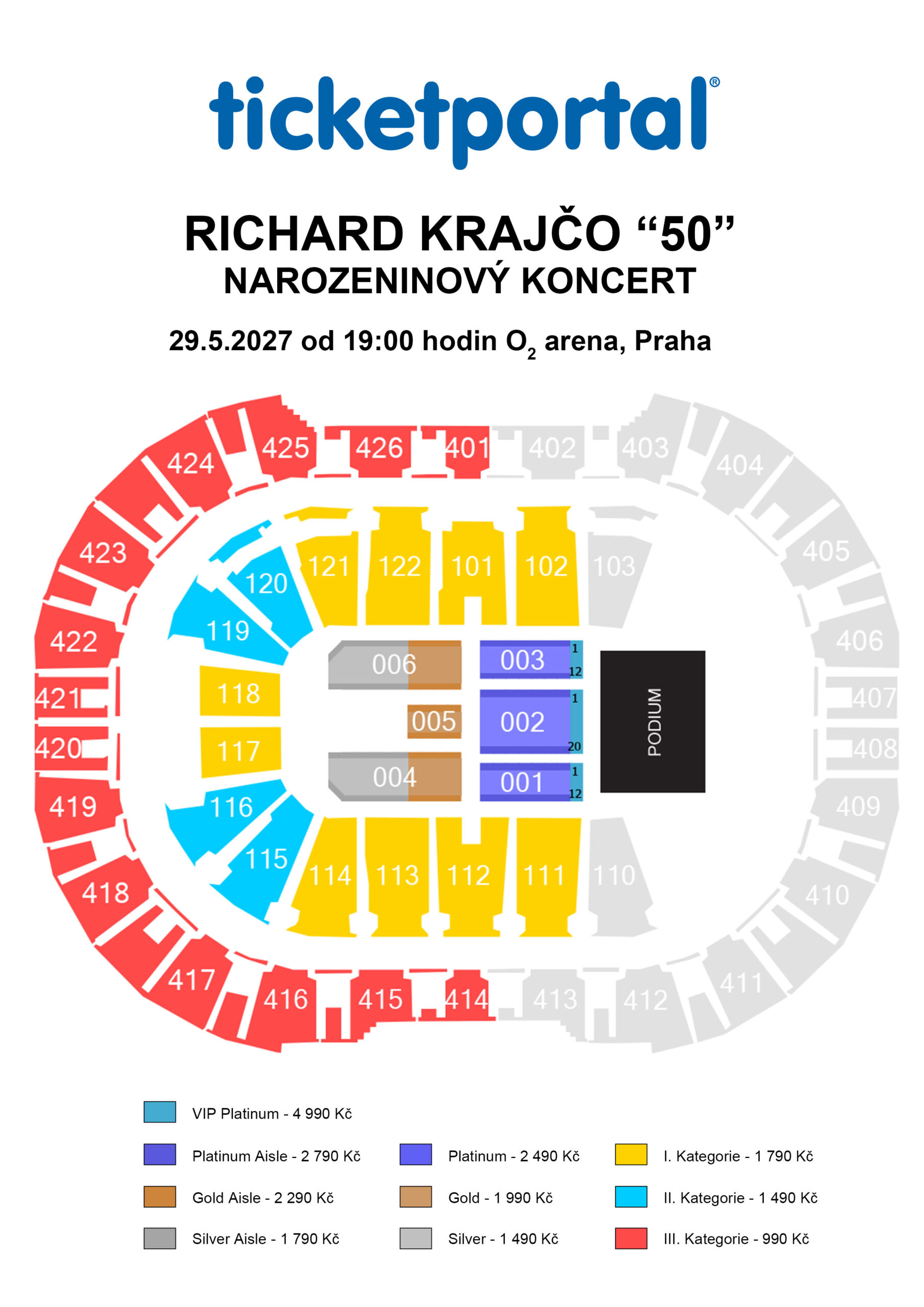 990 – 4 990 Kč Vstupenky pro držitele průkazu ZTP/P vozíčkáře objednávejte u společností Ticketmaster (ticket@ticketmaster.cz) a Ticketportal (rezervace@ticketportal.cz). |