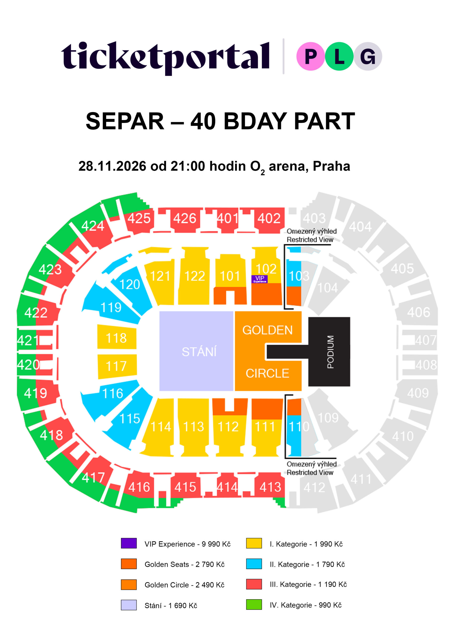 990 – 9 990 Kč Vstupenky pro držitele průkazu ZTP/P vozíčkáře objednávejte u společnosti Ticketportal (rezervace@ticketportal.cz). |