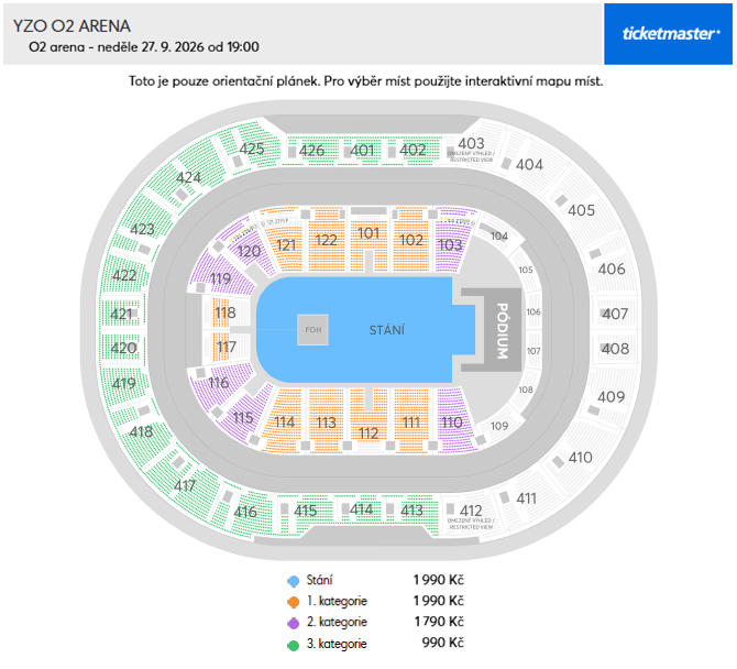 Orientační plán YZO O2 ARENA 26. 9. Ticketmaster (217.95 Kb) Orientační plán YZO O2 ARENA 27. 9. Ticketmaster (257.81 Kb) Orientační plán YZO O2 ARENA 26. 9. Ticketportal (238.99 Kb) Orientační plán YZO O2 ARENA 27. 9. Ticketportal (255.68 Kb) |