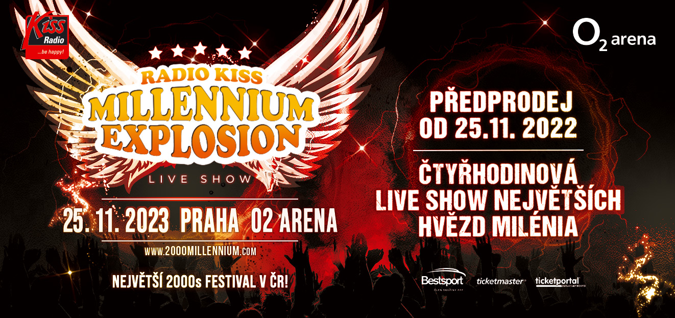 Největší hvězdy milénia míří do O2 areny! Světový koncept Radio Kiss MILLENNIUM EXPLOSION přináší čtyřhodinovou show a nekonečnou after party.