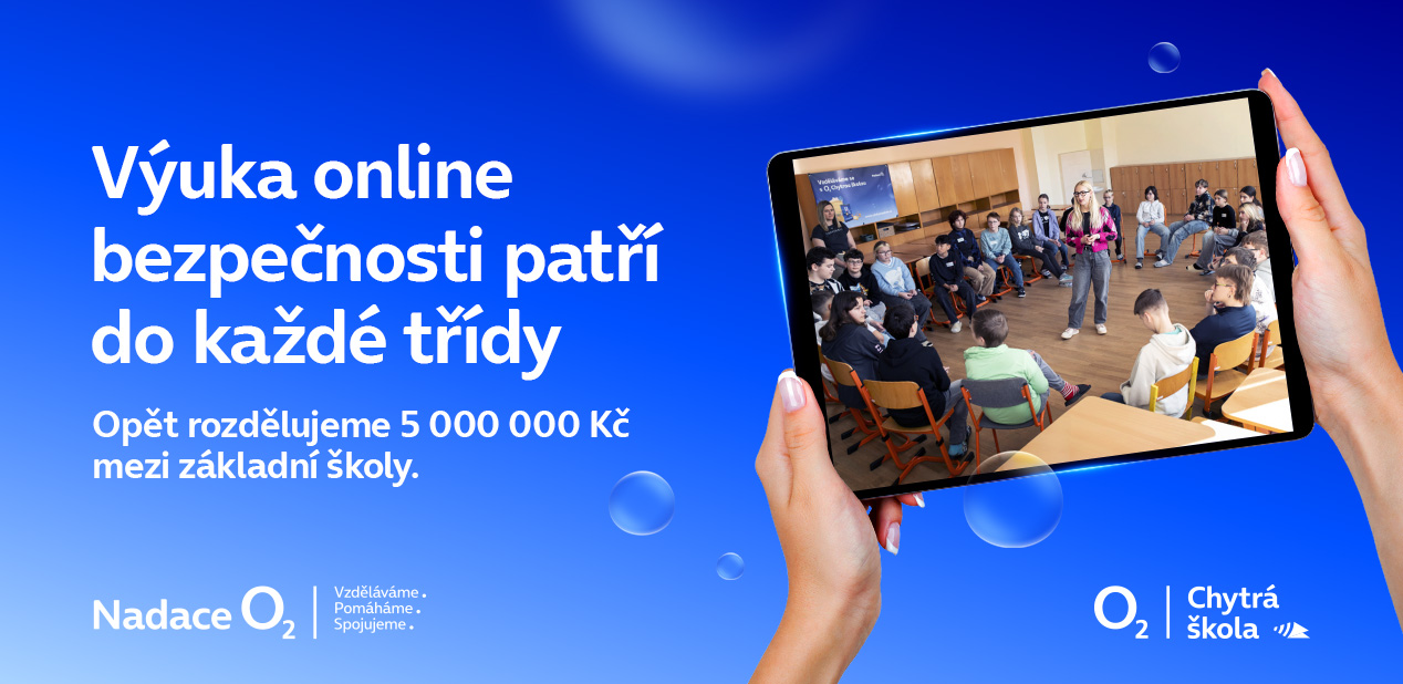 Právě proto Nadace O2 spouští další ročník grantového programu O2 Chytrá škola. Mezi české základní školy rozdělí pět milionů korun na projekty zaměřené na bezpečné a smysluplné využívání technologií. Každá škola může získat až 100 000 Kč na vzdělávací aktivity pro učitele, žáky i rodiče.