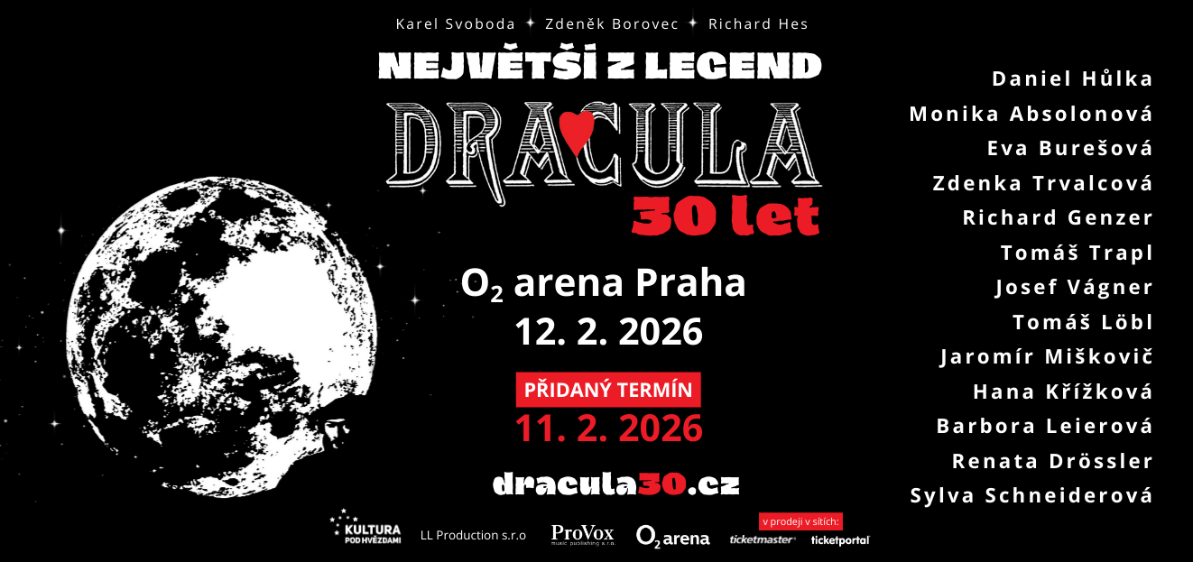 Legendární muzikál Dracula pokračuje v oslavách svých třicátých narozenin a díky mimořádnému zájmu diváků přidává další představení v pražské O2 areně. Uskuteční se ve středu 11. února 2026, tedy den před původně oznámeným termínem, který je už téměř vyprodaný.