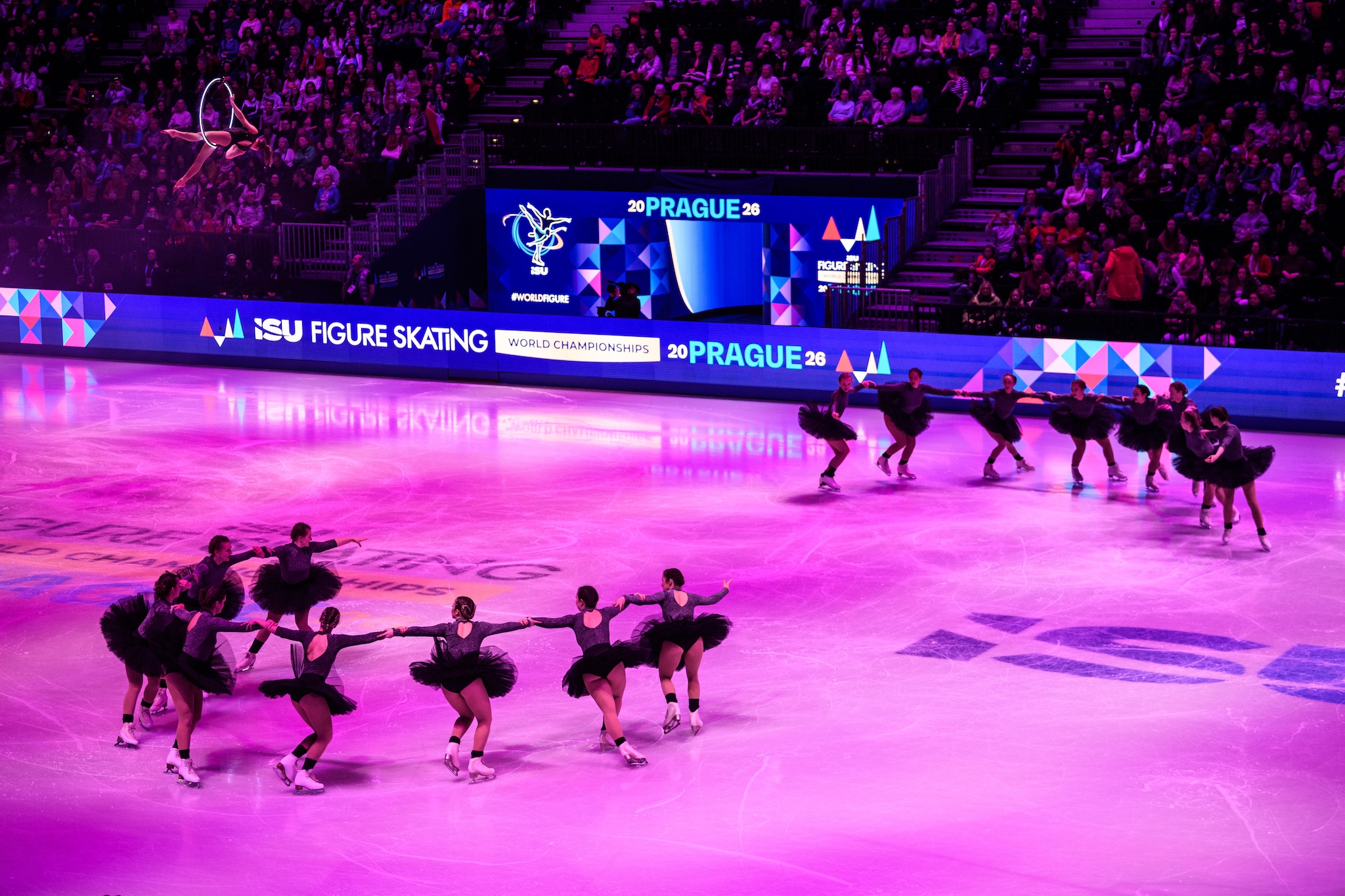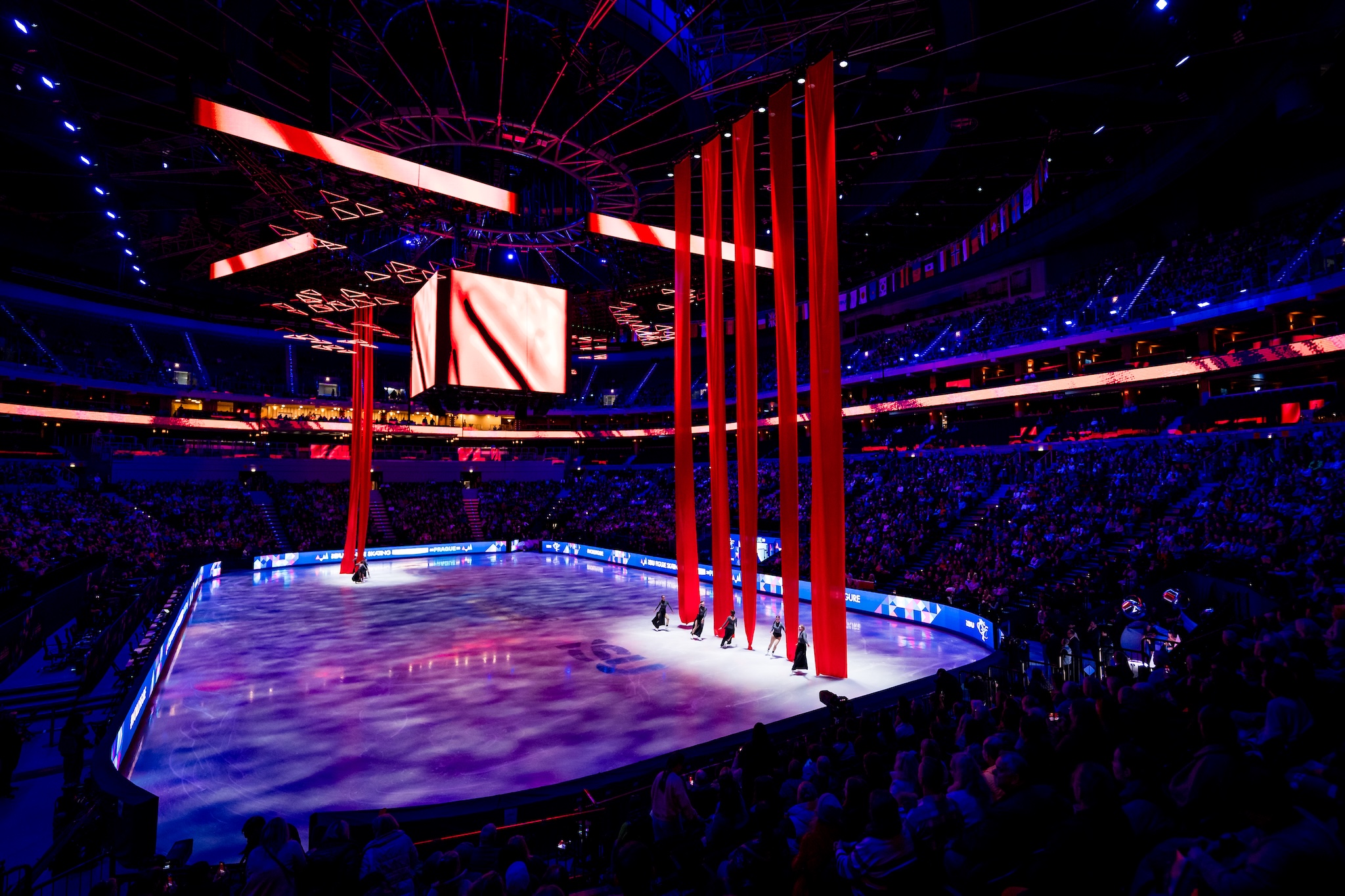 Zaplněná O2 arena sledovala od 18 hodin nejprve slavnostní zahájení, které pod režijní taktovkou Michala Cabana předvedly skupina synchronizovaného bruslení Olympia Praha a akrobatická skupina AirGym Art Company. Poté se na led vydaly sportovní dvojice se svými krátkými programy. Jako třetí v pořadí nastoupila i česká dvojice Anna Valesi a Martin Bidař. Dlouho to vypadalo, že pád po odhazovaném trojitém lutzu je bude stát postup do volných jízd, nakonec jim ale skóre 56,58 bodu stačilo ke 20. místu, které postup zaručuje.